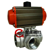 氣動內螺紋三通球閥有L型流道和T型流道兩種。氣動L型螺紋三通球閥Q614F主要用來切換介質流向,使相鄰90°的流道接通。氣動T型螺紋三通球閥Q615F主要用于介質合流或分流,也可以用于切換流向。